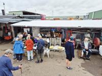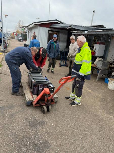 Hela redaktionen för Spantrutan på plats då man ska göra ett reportage om arbetsuppgifterna på kajen i det kommande numret.