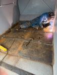 Borttagning av lucka i vattentäta skottet mellan panna och lastrum.