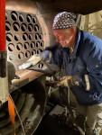 Bild på öppnat skott panngavel. Måttat för att få fram tätning till densamma när det är dags att montera tillbaka!
