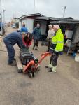 Hela redaktionen för Spantrutan på plats då man ska göra ett reportage om arbetsuppgifterna på kajen i det kommande numret.