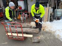 Sågat till kubbar för att ställa under vagnen till Norsälven.
