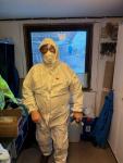 Sara L, Leif N o Peter S tinar upp värmepumpen som var full av is.